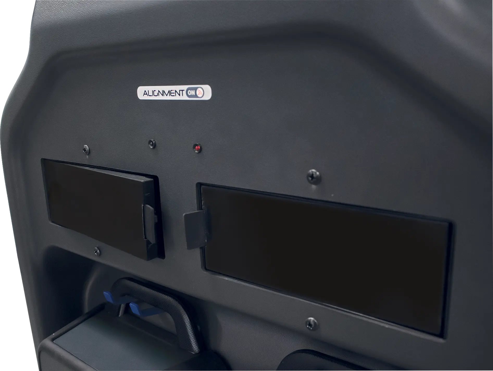 The AllOnWall series allows you to have all that is necessary for performing wheel alignment operations to be placed on a convenient wall-mounted panel, in this way freeing up useful space in the workshop. All alignment activities can be controlled from a 10″ tablet that the operator can carry with him or place on the lifter during adjustment thanks to the built-in magnets. The aligner boasts a well-tested measuring head technology with HD cameras and Real 3D target that is fully wireless with Bluetooth transmission.