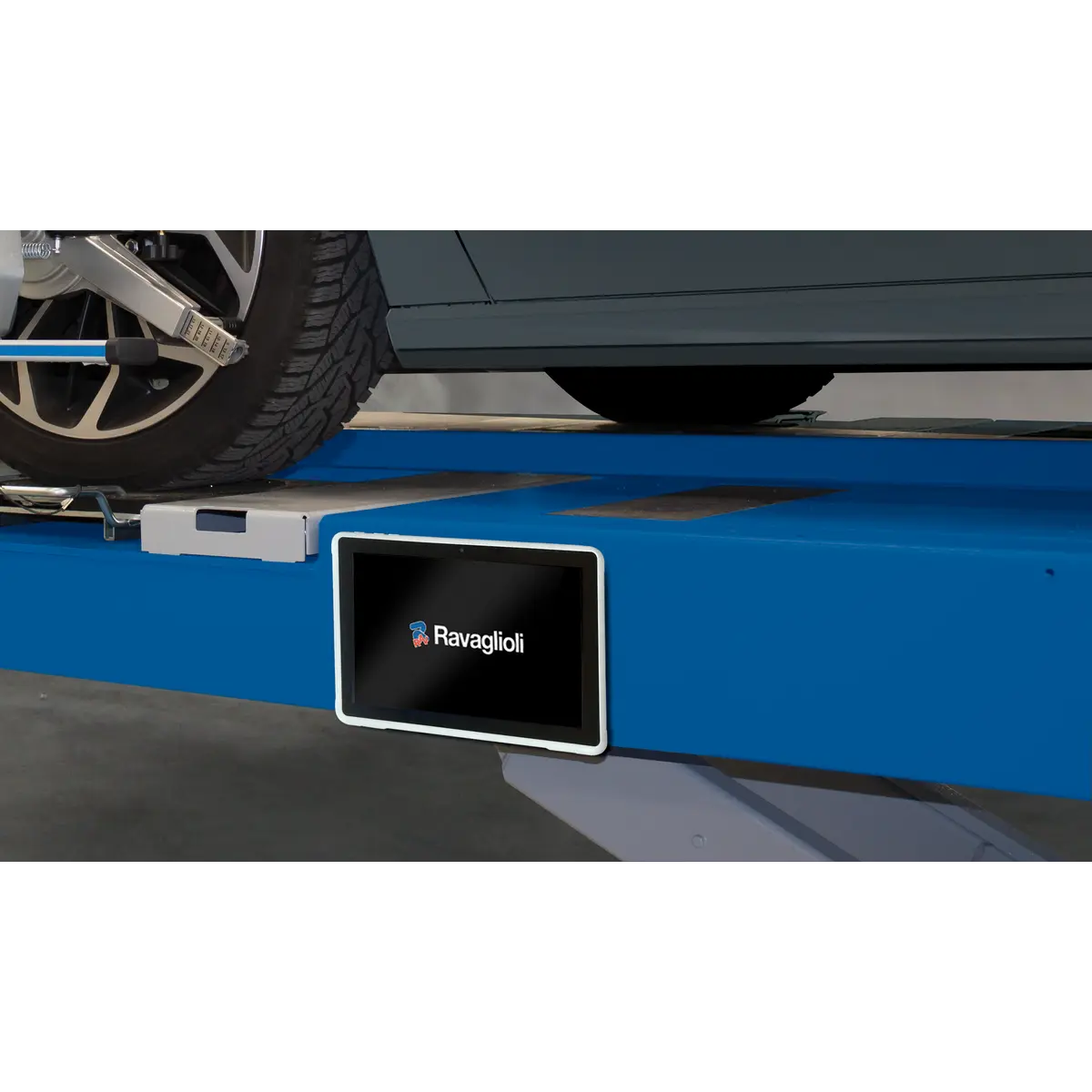 Well it’s flexibility means you can do front toe and some cambers adjustments suspended (with the aid of 2 post drop links) this means the machine can live in one spot of the garage and you can use it in many bays or spaces in your workshop where you have a level surface, allowing quick checks to be effortless and printouts that sell themselves.